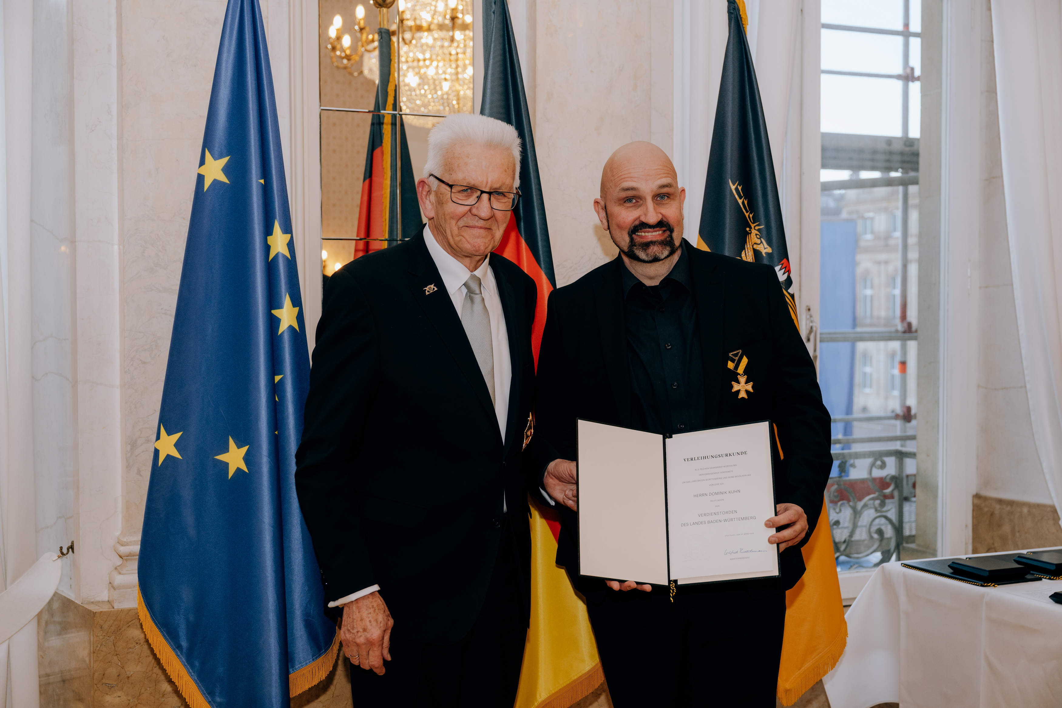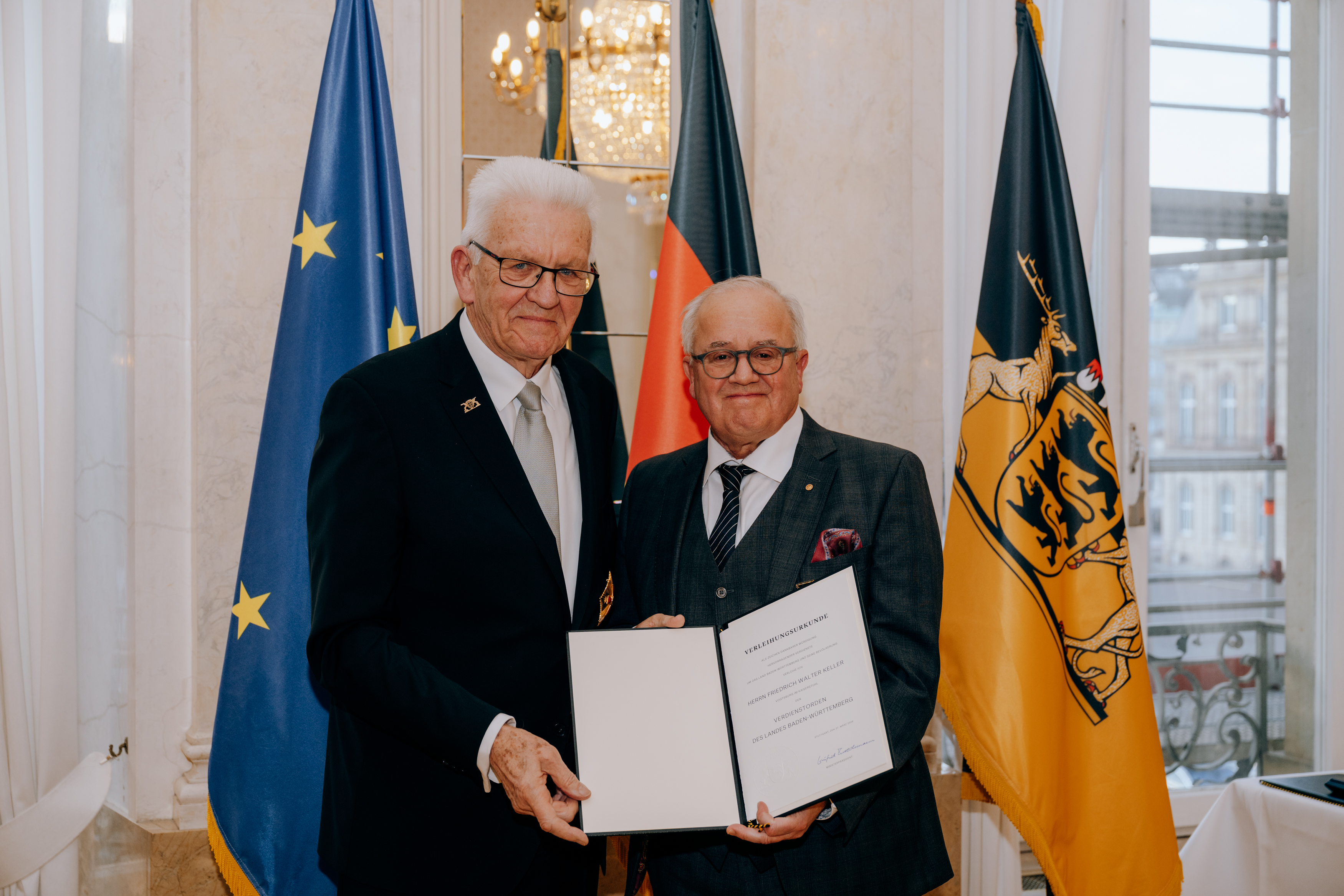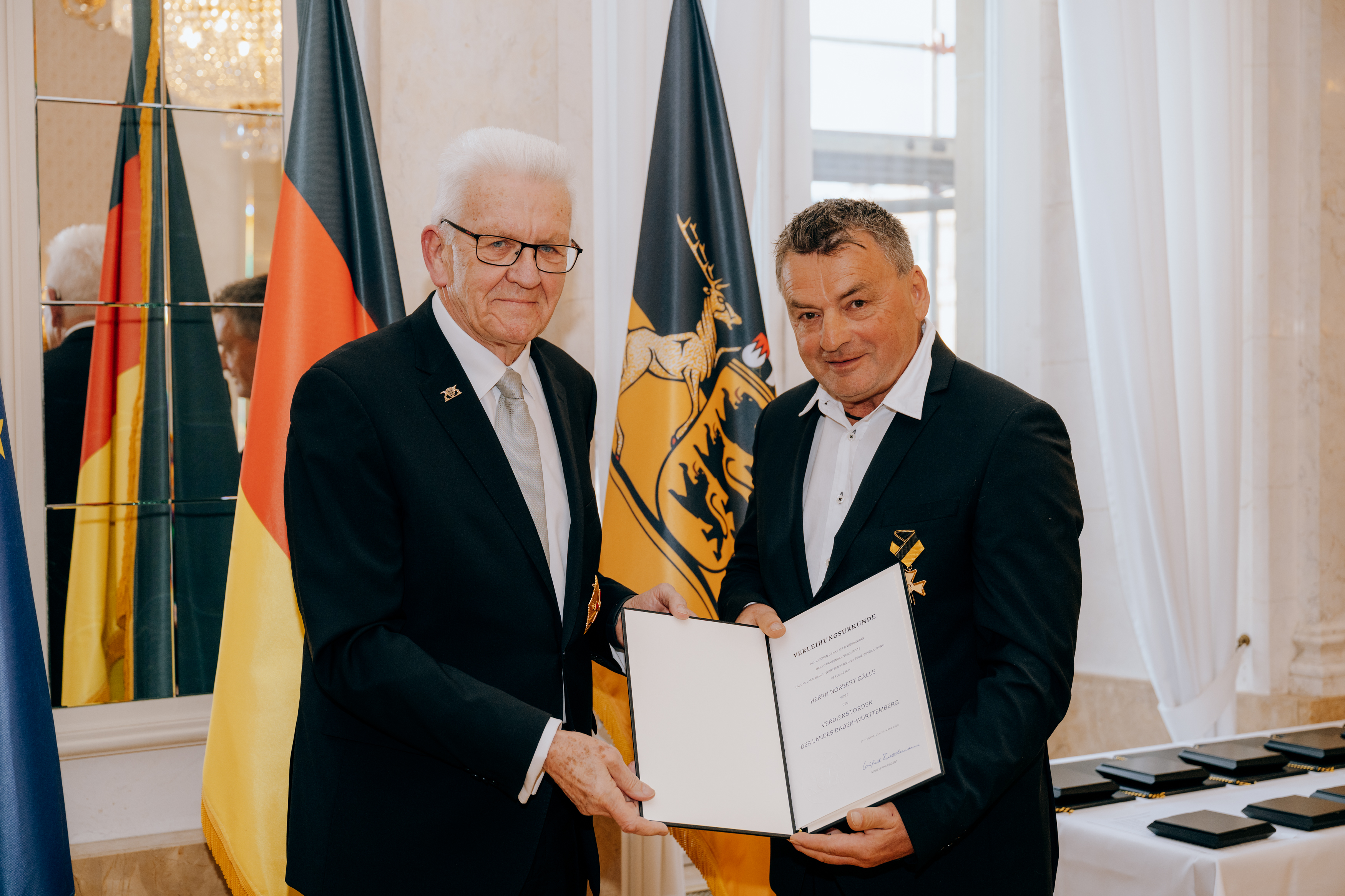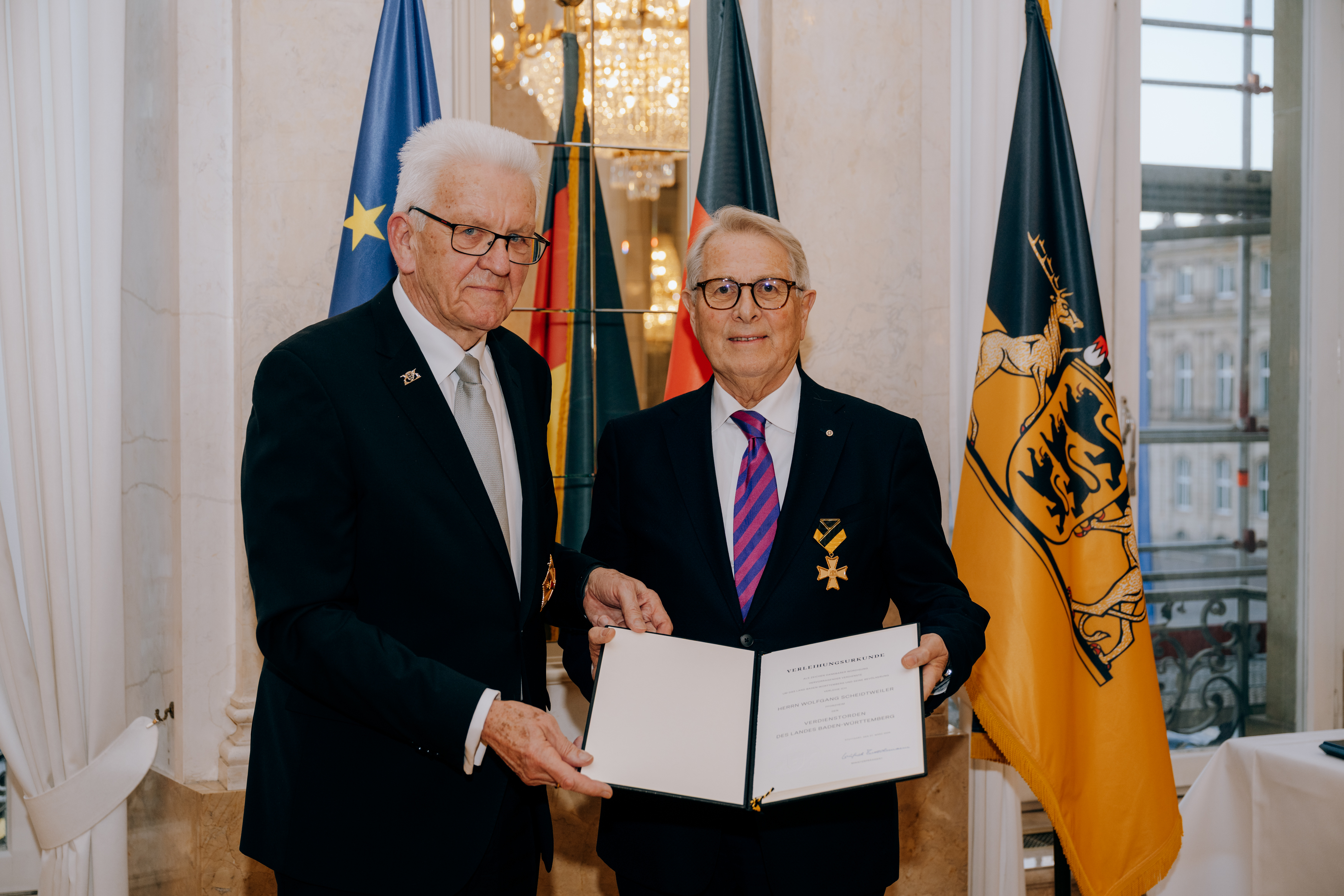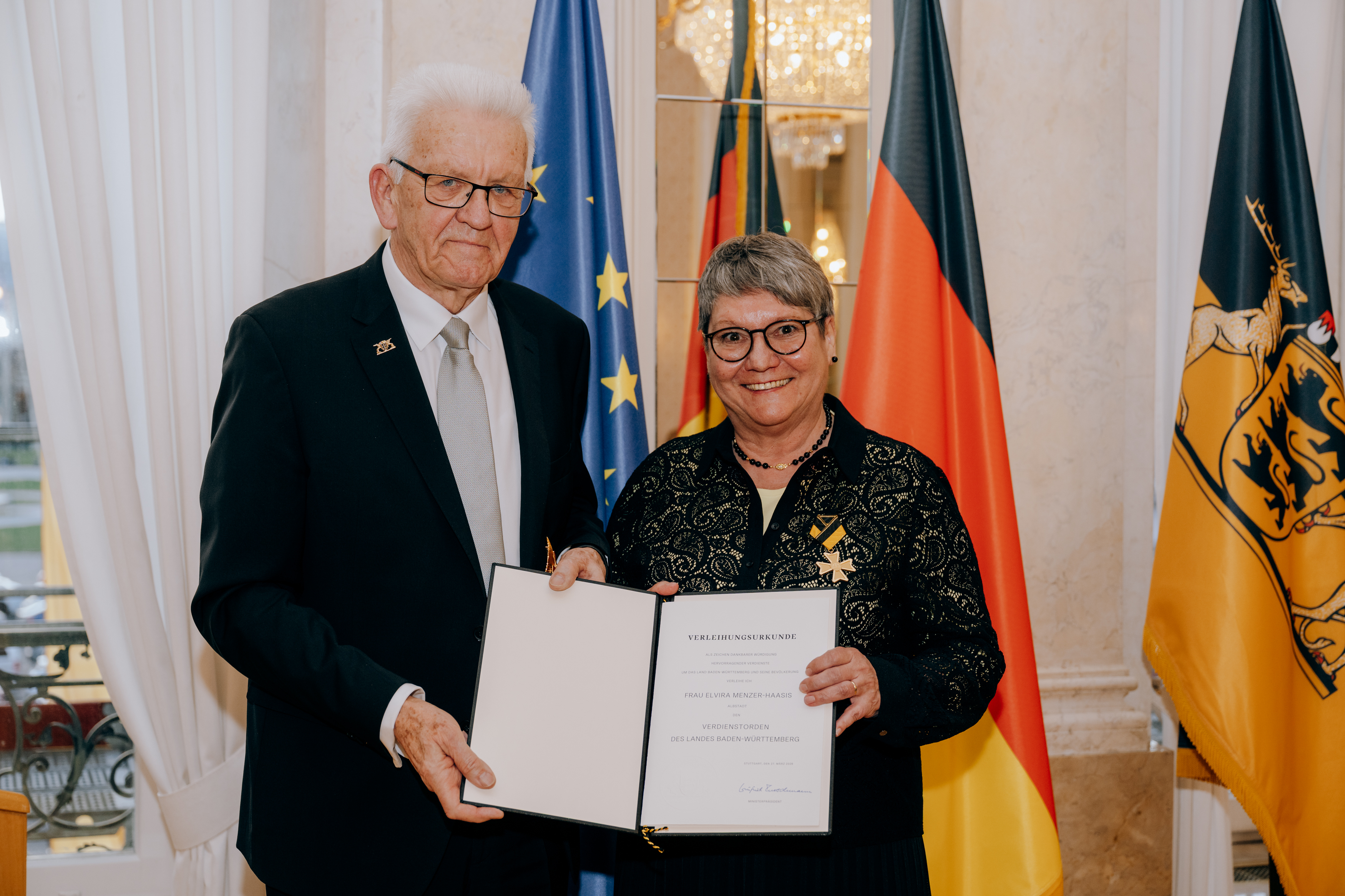 Für herausragende Verdienste um das Land und seine Bevölkerung hat Ministerpräsident Winfried Kretschmann den Verdienstorden des Landes Baden-Württemberg an 27 verdiente Persönlichkeiten überreicht.