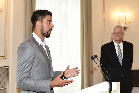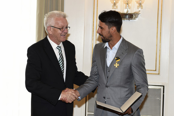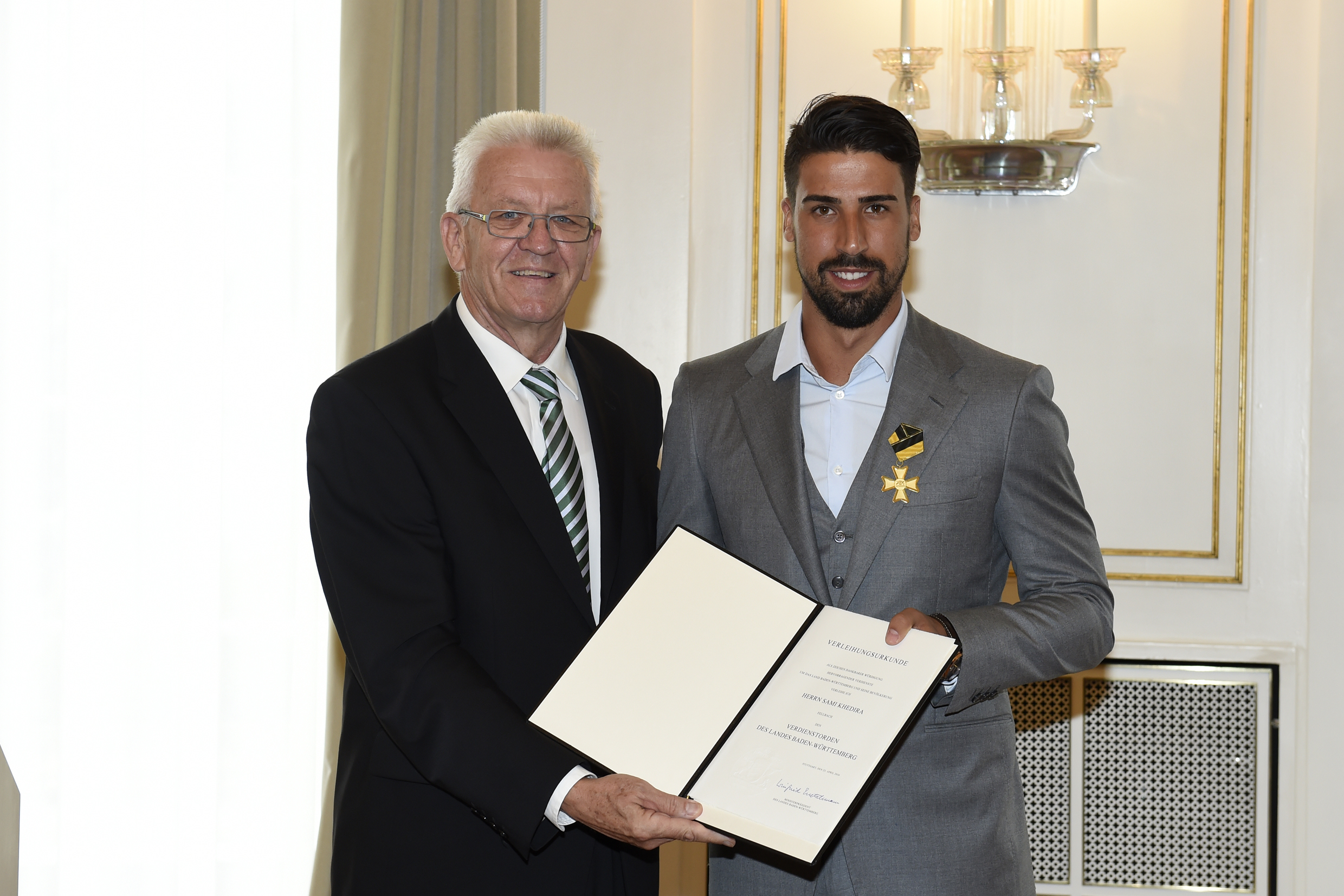Ministerpräsident Winfried Kretschmann hat Sami Khedira den Verdienstorden des Landes Baden-Württemberg überreicht und sein großes sportliches und soziales Engagement gewürdigt.