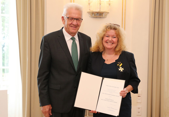Ministerpräsident Winfried Kretschmann hat der Vorstandsvorsitzenden der Israelitischen Religionsgemeinschaft Württembergs, Professorin Barbara Traub, den Verdienstorden des Landes Baden-Württemberg überreicht und ihr Engagement gegen wachsenden Rassismus, Antisemitismus und religiösen Fanatismus gewürdigt.