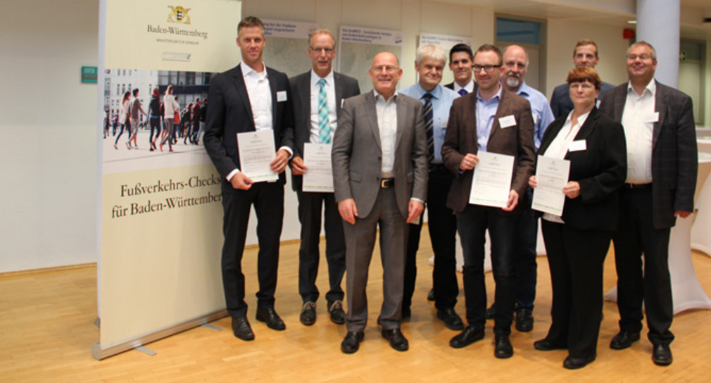 Acht Städte und Gemeinden konnten für die Teilnahme der Fußverkehrs-Checks 2016 ausgewählt werden, die der Verkehrsminister bei der Auftaktveranstaltung zur zweiten Runde der Fußverkehrs-Checks bekannt gab: Bad Säckingen, Freiburg, Heilbronn, Herrenberg, Karlsbad, Lahr, Ludwigsburg und Rangendingen.