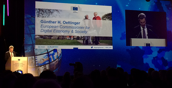 Beim Gipfel der europäischen Innovationspartnerschaft für aktives und gesundes Altern (EIP AHA) hat der EU-Kommissar für digitale Wirtschaft und Gesellschaft Günther Oettinger Baden-Württemberg in Brüssel eine Auszeichnung als europäische Referenzregion überreicht.