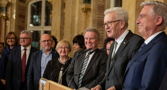 Ministerpräsident Winfried Kretschmann (3.v.l.) bei seiner Ansprache