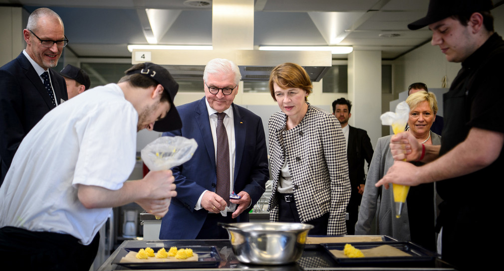 Bundespräsident Frank-Walter Steinmeier und seine Frau Elke Büdenbender besuchten gemeinsam mit Kultusministerin Susanne Eisenmann berufliche Schulen in Baden-Württemberg. Zur Woche der beruflichen Bildung machten sie sich vor Ort ein Bild von zwei beruflichen Schulen in Ludwigsburg und einer weiteren Berufsschule in Bietigheim-Bissingen.
