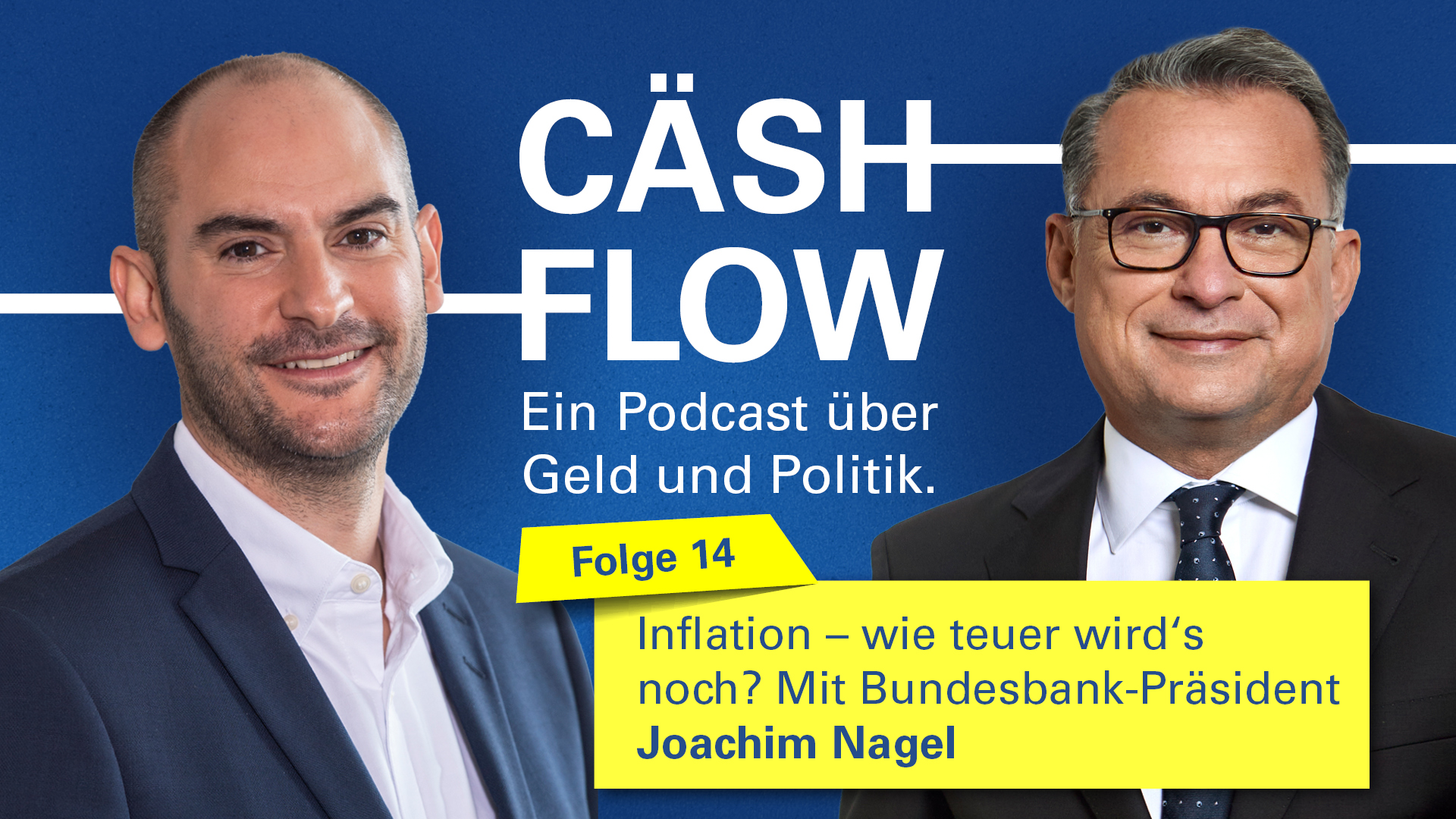 Warum steigen die Preise und was sind die Gründe dafür? Müssen wir uns vielleicht dauerhaft an eine höhere Inflation gewöhnen? Darum gehts in der aktuellen Folge von „Cäshflow“. Gast von Finanzminister Danyal Bayaz ist ein Mann, zu dessen zentralen Aufgaben die Preisstabilität in Deutschland gehört: Joachim Nagel, Präsident der Bundesbank.