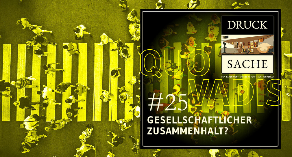 „Quo Vadis gesellschaftlicher Zusammenhalt?“: Bereits zum dritten Mal untersuchte in einer vom Ministerium für Soziales, Gesundheit und Integration Baden-Württemberg geförderten Studie die Bertelsmann Stiftung den gesellschaftlichen Zusammenhalt in Baden-Württemberg. Neben den aktuellen Themen des Bundesrates handelt die 25. Folge des Podcasts „Drucksache“ von den gesellschaftlichen Folgen der Corona-Pandemie.