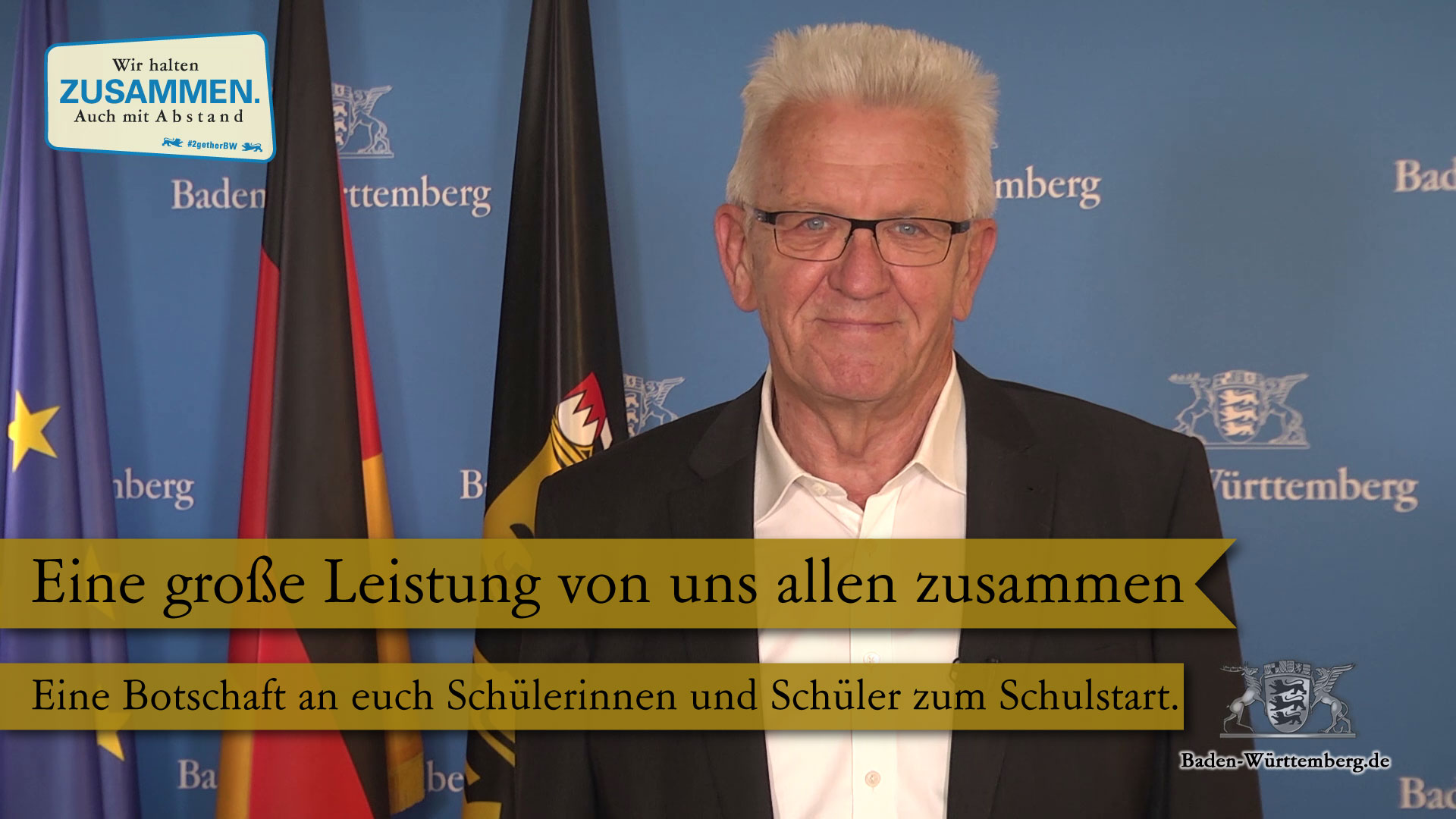 Zum Beginn des neuen Schuljahres am 14. September 2020 wendet sich Ministerpräsident Winfried Kretschmann an die Schülerinnen und Schüler. Es gäbe es viele Gründe sich auf das neue Schuljahr zu freuen, so Kretschmann in seiner Videobotschaft, trotzdem sei in diesem Jahr wegen Corona vieles anders. Das Virus habe vieles auf den Kopf gestellt und es war auch vor allem für die Schülerinnen und Schüler nicht einfach.