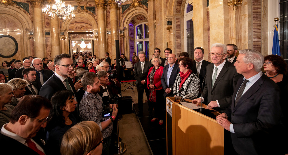 Der diesjährige Neujahrsempfang der Landesregierung stand unter dem Motto „Europa“. Ministerpräsident Winfried Kretschmann bedankte sich bei den rund 700 Gästen, die sich in besonderer Weise um den europäischen Gedanken verdient gemacht haben. Menschen, die sich für Europa einsetzten, seien auch für Baden-Württemberg unverzichtbar.