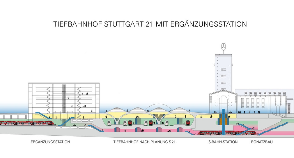 Eine unterirdische Ergänzungsstation zum Bahnprojekt Stuttgart 21 (S 21) ist den Ergebnissen eines vom Verkehrsministerium in Auftrag gegebenen Gutachtens zufolge technisch machbar. Sie ist auch vereinbar mit der städtebaulichen Entwicklung des freiwerdenden Bahngeländes durch die Landeshauptstadt Stuttgart. Verkehrsminister Winfried Hermann sagte am Dienstag bei der Vorstellung des Gutachtens der Verkehrsexperten des Planungsbüros Obermeyer Planen + Beraten GmbH: „Angesichts des fortschreitenden Klimawandels muss es auch nach 2030 mit dem Ausbau des Schienenverkehrs weitergehen können. Deshalb gilt es, die Leistungsfähigkeit des Schienenknotens Stuttgart weiterzuentwickeln. Die S-Bahn-Stammstrecke und der neue Tiefbahnhof werden in den 30er Jahren an ihre Grenzen stoßen. Die Ergänzungsstation ist für den Ausbau des S-Bahn- und des Regionalbahnsystems eine wesentliche Voraussetzung. Sie dient auch bei Störfällen als Ausweichmöglichkeit.“