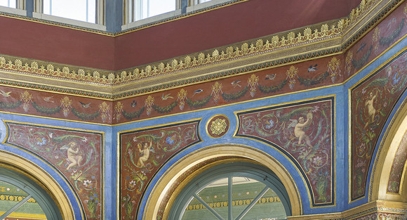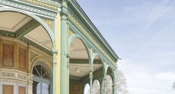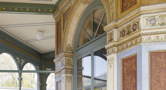 Bei der aufwendigen Sanierung und Restaurierung musste beispielsweise die komplette Gusseisenkonstruktion abgebaut, in der Werkstatt instandgesetzt, neu beschichtet und wieder aufgebaut werden. Die Kupferdeckung wurde ebenfalls erneuert und wieder eingebaut. Die Wandmalereien im Innen- und Außenbereich sowie der Sandstein wurden gereinigt, konserviert und restauriert. Ebenso das obere Fensterband. Der Natursteinbelag wurde teilweise neu gemacht. Der Bodenbelag im Innenraum wurde neu eingebaut, die Fenster und die Tür erneuert. Der Pavillon bekam zudem eine neue Heiz- und Lüftungstechnik.