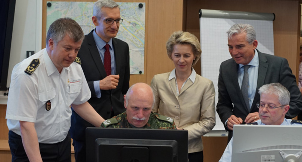 „Das ist ein historischer Moment. Erstmals in der Geschichte der Bundesrepublik üben wir derzeit das Zusammenspiel von Polizei und Bundeswehr zur Terrorabwehr. Ich habe das schon lange vorgeschlagen und bin sehr froh, dass es nun diese Übung gibt. Wir wollen bestmöglich vorbereitet sein für eine Lage, die hoffentlich niemals eintritt“, so der Stellvertretende Ministerpräsident und Minister für Inneres, Digitalisierung und Migration, Thomas Strobl. Er dankte in diesem Zusammenhang ausdrücklich der Bundesverteidigungsministerin Ursula von der Leyen, die sich im Lagezentrum der Landesregierung über den Verlauf der Übung in Baden-Württemberg informierte und vom Innenmister herzlich empfangen wurde.