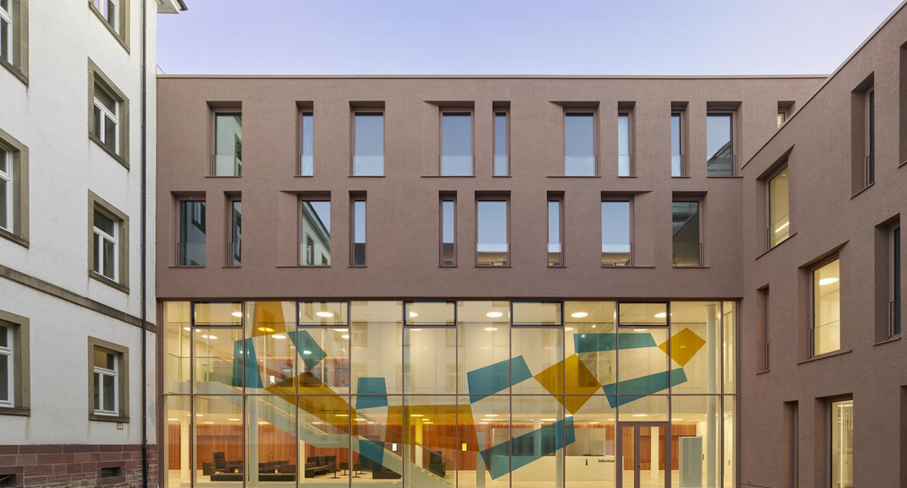 Der Erweiterungsbau hat eine Nutzungsfläche von etwa 3.500 Quadratmetern. Die klar getrennten öffentlichen und internen Bereiche sorgen für die notwendige Sicherheit der Mitarbeiterinnen und Mitarbeiter. Zudem gewährleisten sie Datenschutz und Vertraulichkeit und auch eine leichte Orientierung im Gebäude. Der neue Haupteingang ist durch den bestehenden Tordurchgang im Gebäude Kaiser-Joseph-Straße über den westlichen Innenhof erreichbar. Alle Gerichtssäle, sowohl im Erweiterungsbau als auch im Bestand, sind an diesen angebunden. Strafgerichtssäle sind im Erdgeschoss, Familien- und Zivilgerichtssäle im ersten Obergeschoss untergebracht. Darüber liegen Räume mit geringerem Publikumsverkehr, wie das Nachlassgericht. Das Untergeschoss befinden sich Registraturen, Technikräume und Vorführzellen. Verantwortlich für die bauliche und technische Umsetzung war Vermögen und Bau Freiburg.