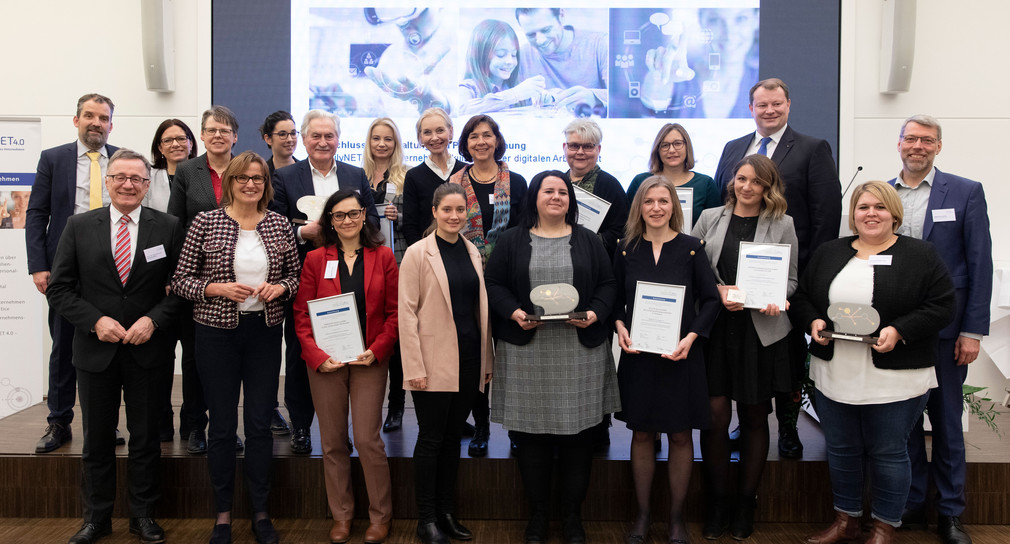 Bei der Abschlussveranstaltung des Modellprojekts „familyNET 4.0 – digitales familienbewusstes Unternehmen“ wurde erstmalig auch der Award „familyNET 4.0 - Unternehmenskultur in einer digitalen Arbeitswelt“ verliehen. Katrin Schütz, Staatssekretärin im Wirtschaftsministerium, und Stefan Küpper, Geschäftsführer des Bildungswerks der Baden-Württembergischen Wirtschaft e. V. und der Arbeitgeber Baden-Württemberg, zeichneten drei Unternehmen in drei Kategorien für ihre besonders innovativen und nachhaltigen Angebote und Maßnahmen aus.