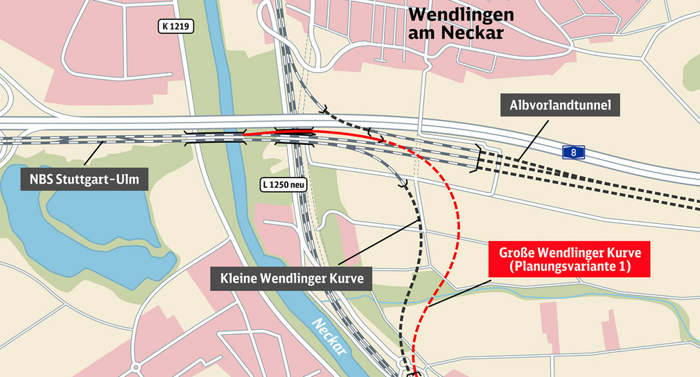 Das Projekt des zweiten Gleises der Wendlinger Kurve wurde aufgrund des Bau- und Planungsfortschritts bei der Neubaustrecke und der Kleinen Wendlinger Kurve in zwei Abschnitte aufgeteilt. Abschnitt 1 umfasst die Einschleifung in die Neubaustrecke und deren Unterquerung. Für diesen Abschnitt liegt mit der Zulassung des Eisenbahnbundesamtes vom 16. April 2019 bereits Baurecht vor und erste Arbeiten werden noch im Sommer 2019 beginnen. Der zweite Abschnitt umfasst den Tunnel von der Neubaustrecke bis zur Ausschleifung aus der Neckartalbahn in Oberboihingen. Hier laufen zurzeit die Entwurfsplanung und die Erkundung des Baugrundes und mit einem Zulassungsantrag ist Ende des Jahres 2019/Anfang 2020 zu rechnen. Im Rahmen dieses Verfahrens erfolgt auch eine formelle umfangreiche Beteiligung der Öffentlichkeit.