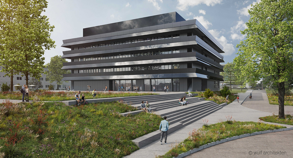 Ein besonderer Fokus liegt auf der Nachhaltigkeit: Das Gebäude erfüllt die Anforderungen des Effizienzhaus 40 und erhält eine Zertifizierung des Bewertungssystems Nachhaltiges Bauen (BNB) in Silber. Bauprojekte des Landes werden beim BNB nach den Grundsätzen des nachhaltigen Bauens durchgeführt. Auf das Dach kommt eine Photovoltaikanlage mit einer Leistung von insgesamt rund 85 Kilowatt Peak. Zusätzlich werden in den Brüstungen und an den Technikfassaden gebäudeintegrierte Photovoltaikelemente mit zusätzlich rund 300 Kilowatt Peak installiert. Sie gewinnen Energie, bieten Sonnenschutz und bilden ein gestalterisches Fassadenelement. Das Gebäude wird an die Fernwärme der Stadt Reutlingen angeschlossen. Auch die Gestaltung folgt einem städtebaulichen Masterplan, der den Campus langfristig autofrei und klimaanpassungsfähig macht.
