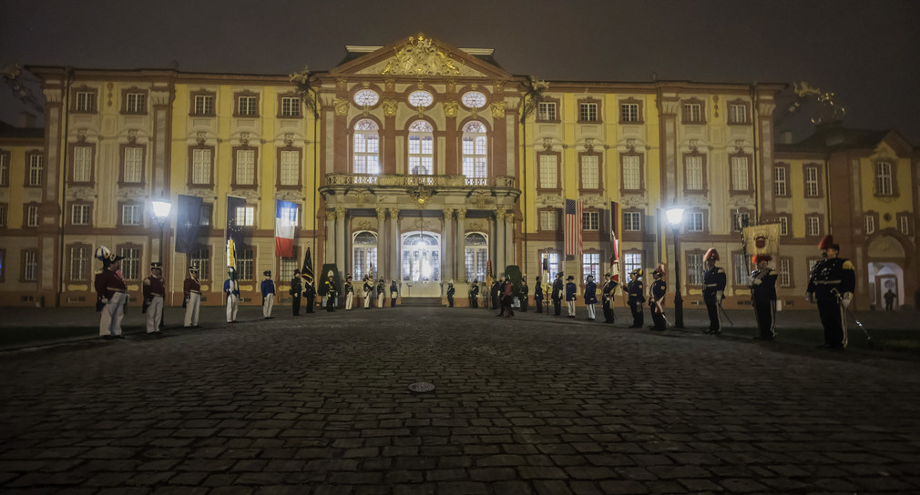 Die Landesregierung hat Vertreter der Bundeswehr und der befreundeten Streitkräfte aus Europa und den USA sowie Vertreter aus Polizei, Politik, Wirtschaft und Verwaltung im Bruchsaler Schloss empfangen.
