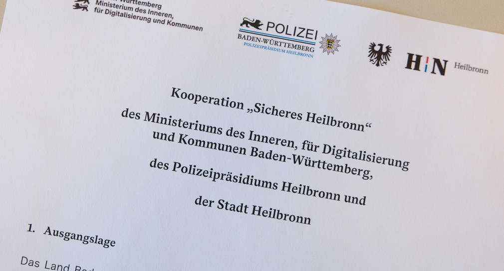 Das Ministerium des Inneren, für Digitalisierung und Kommunen, das Polizeipräsidium Heilbronn und die Stadt Heilbronn haben am 17. Oktober 2024 die Kooperationsvereinbarung „Sicheres Heilbronn“ (PDF) unterzeichnet. Damit wird die bestehende, gemeinsame und gute Zusammenarbeit verstetigt und verstärkt, um insbesondere das Sicherheitsgefühl der Bevölkerung in Heilbronn zu stärken.