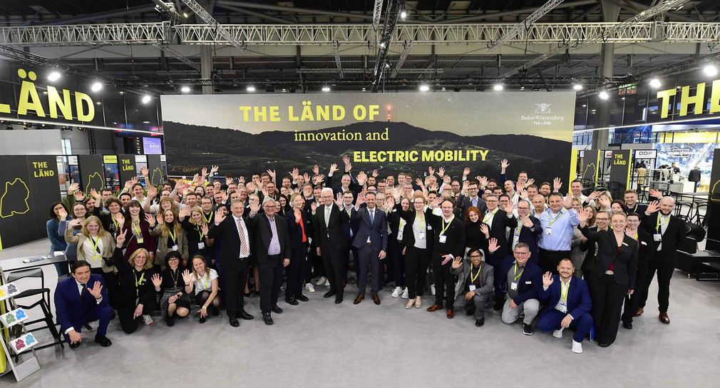 Gruppenbild vor dem baden-württembergischen Gemeinschaftsstand auf der Hannover Messe 2024