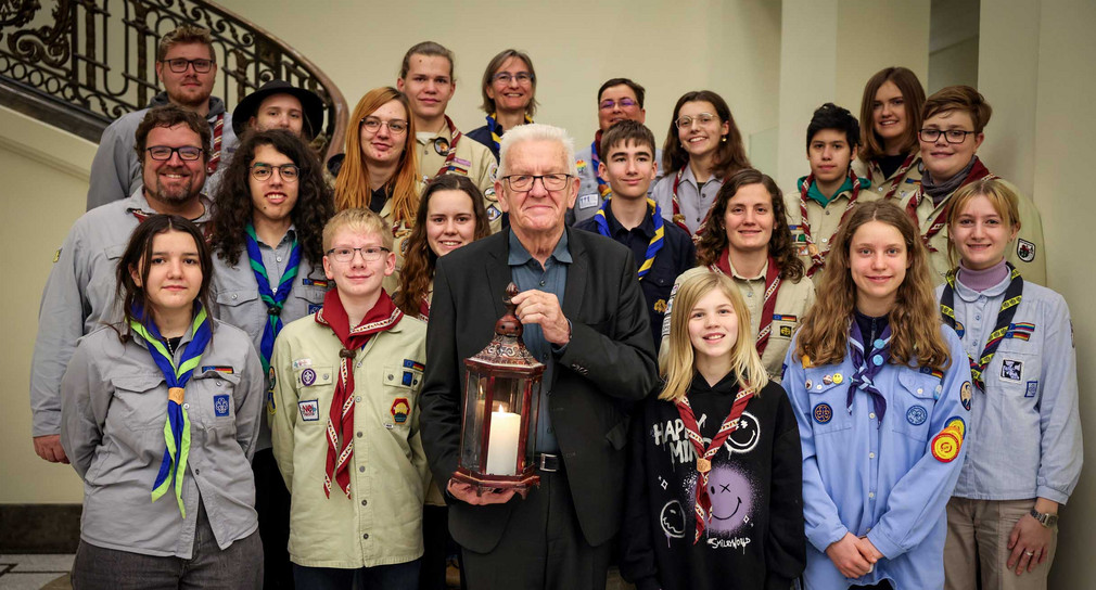 In einem feierlichen Rahmen haben jugendliche Pfadfinderinnen und Pfadfinder das Friedenslicht aus Bethlehem an Ministerpräsident Kretschmann übergeben. Es wird nun bis zum neuen Jahr im Foyer der Villa Reitzenstein aufgestellt und soll ein Zeichen des Friedens in der Adventszeit sein. Das diesjährige Motto der Aktion lautet: „Vielfalt leben, Zukunft gestalten“.
