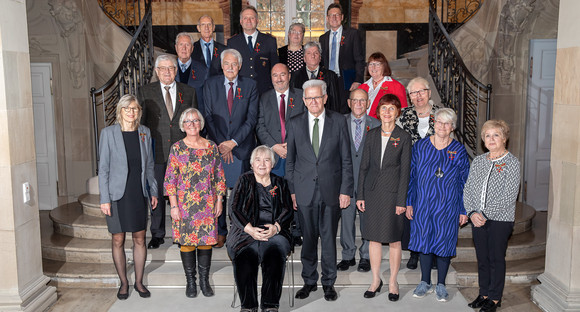 Anlässlich des Tages des Ehrenamtes hat Ministerpräsident Winfried Kretschmann 18 Bürgerinnen und Bürger für besonderes ehrenamtliches Engagement das Bundesverdienstkreuz überreicht und ihren Einsatz gewürdigt.