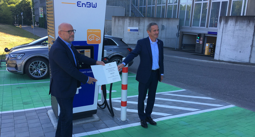 E-Mobilität gilt als ein wichtiges Element für ein nachhaltiges Verkehrskonzept. Dabei ist für viele Menschen der verlässliche Zugang zu Ladeinfrastruktur und das schnelle Aufladen leerer Akkus entscheidend, um auf ein E-Auto umsteigen. Das Land Baden-Württemberg fördert daher im Rahmen der Landesinitiative III Marktwachstum Elektromobilität den Ausbau alternativer Antriebsarten und hat das Projekt „Urbane Schnelllade-Parks in Baden-Württemberg“ (USP-BW) ins Leben gerufen: Unter Leitung der EnBW sollen 16 Pilotstandorte in 15 Städten in Baden-Württemberg mit öffentlichen Schnelllade-Parks für Elektrofahrzeuge ausgestattet werden. Den Förderbescheid für das bundesweit einzigartige Projekt übergab Verkehrsminister Winfried Hermann EnBW-Chef Frank Mastiaux.