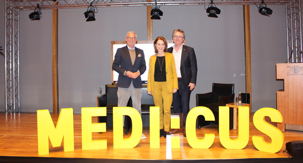 Auch Manne Lucha sieht große Chancen: „Mit MEDI:CUS entsteht eine zentrale und standardisierte Plattform für das Gesundheitswesen in Baden-Württemberg. Sie ist damit das optimale Instrument, um innovative Anwendungen möglichst rasch aus der Forschung in die Fläche zu bringen, einen nachweisbaren Nutzen für Patientinnen und Patienten zu liefern und so die medizinische Versorgung im Land zu verbessern. MEDI:CUS ergänzt damit auch unser geplantes KI-Reallabor, mit dem wir einen experimentellen Rahmen für die Entwicklung und Erprobung neuer Technologien schaffen wollen.“