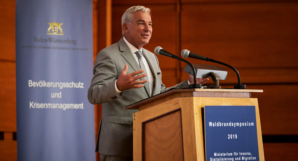 Baden-Württemberg ist bei der Bekämpfung von Waldbränden gut gerüstet. Gerade in der Gefahrenabwehr ist es aber unerlässlich, sich rechtzeitig auf Veränderungen einzustellen. Daher lud das Innenministerium zu einem Waldbrandsymposium ein, bei dem sich Feuerwehren, Kommunen und Hilfsorganisationen über aktuelle Entwicklungen und Maßnahmen in der Waldbrandbekämpfung informieren konnten. Innenminister Thomas Strobl: „Wir wollen für den Fall der Fälle gut vorbereitet sein – Klimatische Veränderungen und deren Folgen nehmen wir sehr ernst.“