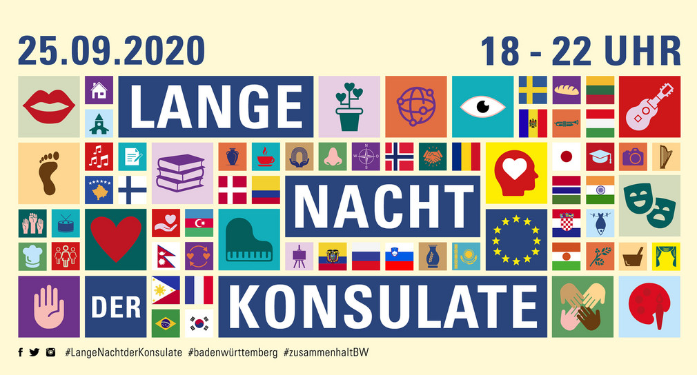 Im Rahmen des Projekts „Europa in Baden-Württemberg“ als Teil des ressortübergreifenden Impulsprogramms der Landesregierung zum gesellschaftlichen Zusammenhalt haben das Justizministerium und das Staatsministerium ein ganz besonderes Veranstaltungsformat erarbeitet: Zur „Langen Nacht der Konsulate“ an diesem Freitag, den 25. September 2020, öffnen von 18 bis 22 Uhr zahlreiche Konsulate in der Landeshauptstadt ihre Türen. Die Stuttgarter Konsulate und Einrichtungen haben ein buntes Programm vorbereitet – mit verschiedenen Präsentationen, Vorträgen und Aufführungen sowie kulinarischen Köstlichkeiten. Bürgerinnen und Bürger bekommen Einblick in die Arbeit der Konsulate und vielfältige Informationen zu Land, Leuten und Kultur. Ebenfalls beteiligt sind das Europahaus, das Institut für Auslandsbeziehungen und die Landeshauptstadt Stuttgart. Alle geltenden Abstands- und Hygieneregeln werden selbstverständlich eingehalten.