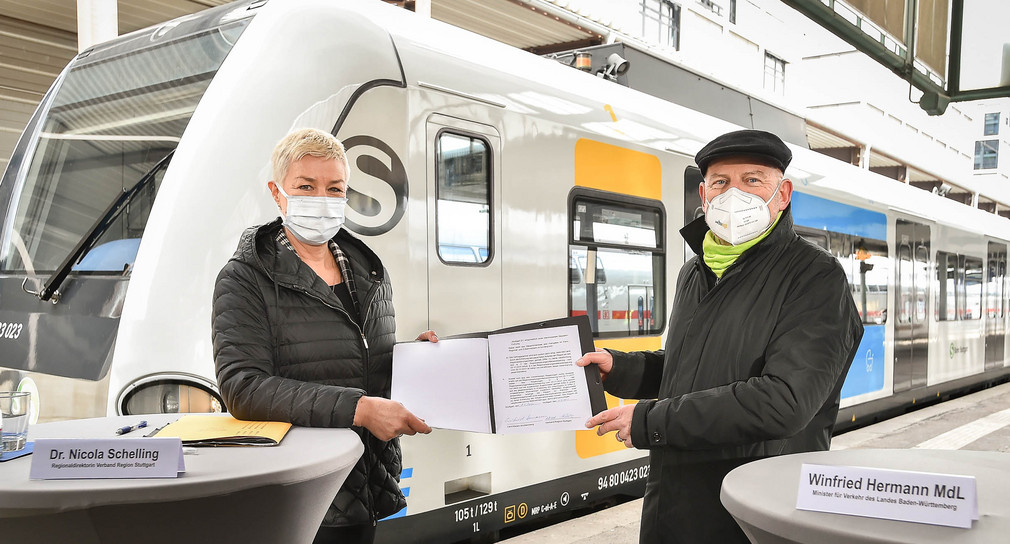 „Die S-Bahn ist das Rückgrat des öffentlichen Verkehrs in der Region Stuttgart. Und wir wollen sie gemeinsam weiter stärken. Zahlen zeigen, die Bürgerinnen und Bürger wollen die S-Bahn verstärkt nutzen und wir brauchen sie für eine erfolgreiche Verkehrswende“, sagte Verkehrsminister Winfried Hermann bei der Unterzeichnung vor einem neuen Zug der S-Bahn. „Dazu haben wir mit dem Verband Region Stuttgart ein Paket geschnürt: 58 neue S-Bahn-Züge fördert das Land mit 106 Millionen Euro. In der Hauptverkehrszeit werden nur noch lange Züge fahren. Zwischen Schwabstraße und Vaihingen und teilweise weiter bis Böblingen wird der Takt verdichtet. Und zwischen Feuerbach und Weil der Stadt wird eine Expresslinie eingeführt“, so Hermann weiter.