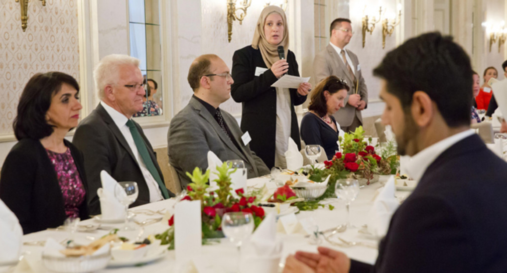 Der Empfang zum Ramadan stand in diesem Jahr unter dem Motto „Islamischer Religionsunterricht und Islamische Theologie“. Geladen waren unter anderem Studierende und Lehrende der islamischen Theologie und Religionspädagogik an den Hochschulen in Baden-Württemberg, Vertreterinnen und Vertreter der muslimischen Verbände, der Kirchen und Religionsgemeinschaften, der Landesregierung sowie Landtagsabgeordnete.