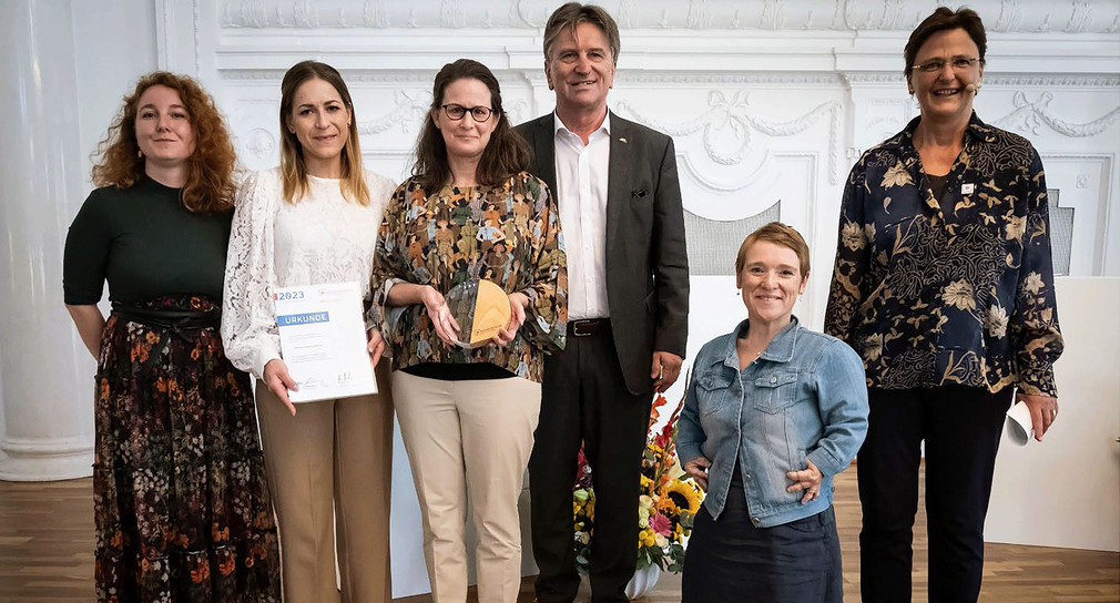 Manuela Rominski und Sarah Baresi nahmen den Preis von Sozialminister Manne Lucha entgegen, der auch Schirmherr des Engagementpreises ist.