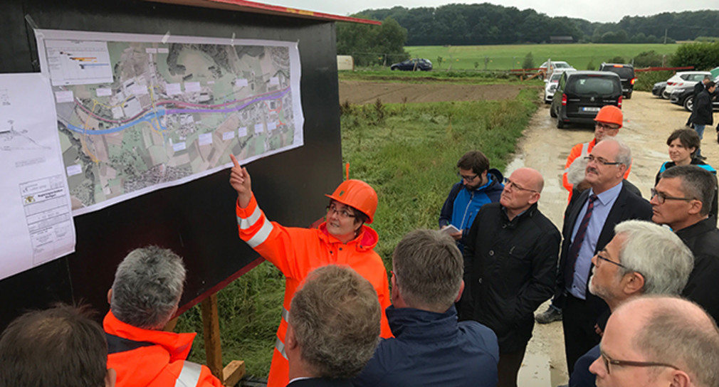 Am 27. Juli 2015, also vor genau zwei Jahren, hat Verkehrsminister Hermann gemeinsam mit dem Parlamentarischen Staatssekretär Norbert Barthle (BMVI), der auch diesmal – bei diesem Punkt der Baustellentour – dabei ist, den feierlichen Spatenstich für den Bau der Ortumfahrung Mögglingen im Zuge der B 29 vorgenommen.