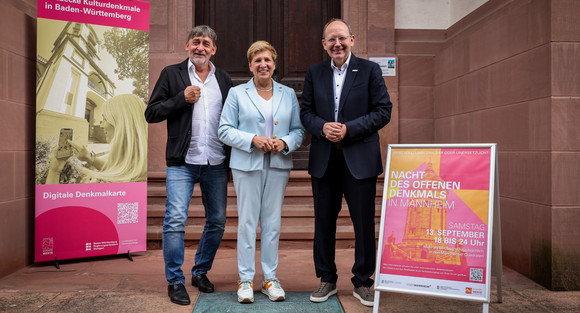 Nicole Razavi, Ministerin für Landesentwicklung und Wohnen hat gemeinsam mit Prof. Dr. Claus Wolf, Präsident des Landesamts für Denkmalpflege (LAD) im Regierungspräsidium Stuttgart, und dem Mannheimer Oberbürgermeister Christian Specht in der Mannheimer Sternwarte das Programm zur landesweiten Eröffnungsveranstaltung zum Tag des offenen Denkmals und der anschließenden Nacht des offenen Denkmals am 13. und 14. September 2025 vorgestellt. Außerdem wurde die neue digitale Denkmalkarte freigeschaltet, die Informationen zu Kulturdenkmalen in Baden-Württemberg frei zugänglich macht.