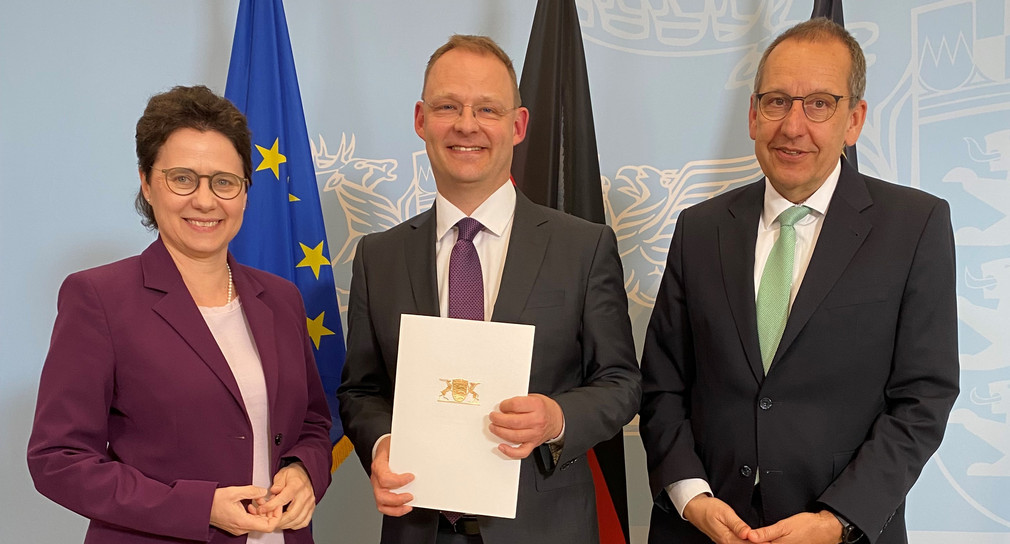 Im Rahmen einer Feierstunde überreichte die Ministerin der Justiz und für Migration Baden-Württemberg, Marion Gentges, dem bisherigen Vizepräsidenten des Landgerichts Freiburg, Dr. Jürgen Adam, die Ernennungsurkunde zum Präsidenten des Amtsgerichts Freiburg.