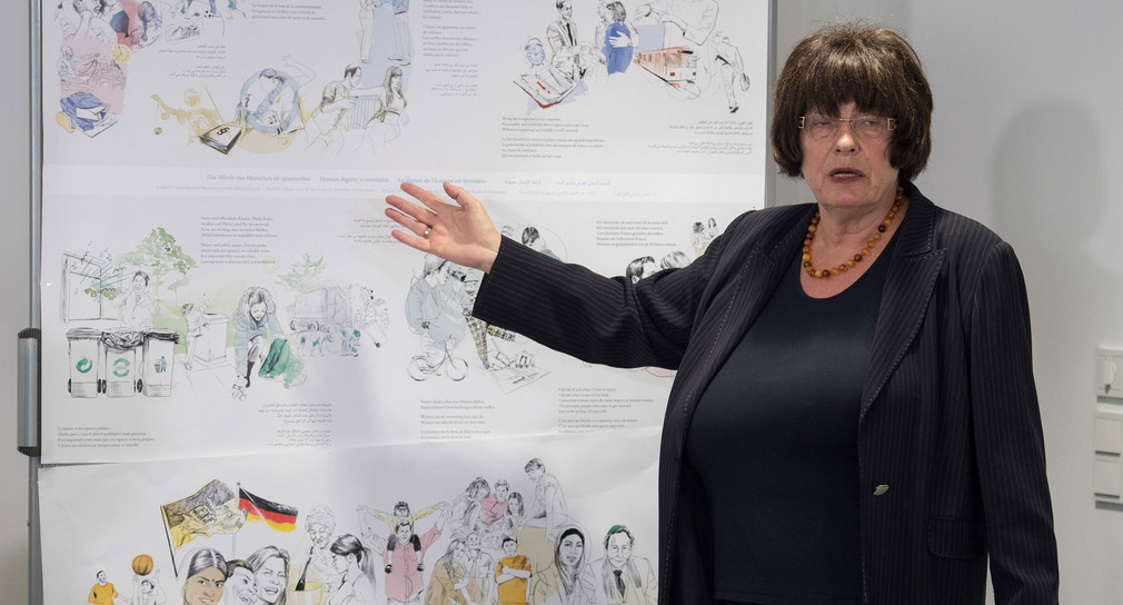 „Dieses Buch soll verdeutlichen, was alle in Deutschland respektieren müssen, was erwünscht ist und was nicht. Es richtet sich an die zahlreichen ehrenamtlichen Helfer, die sich an den unterschiedlichsten Stellen für die Integration von Flüchtlingen engagieren. Sie können die Motiv-Plakate und den Guide als Einstieg für ihre Gespräche über das Leben und das Zusammenleben in Baden-Württemberg nutzen“, sagte die Staatsrätin, die mit der Realisierung des Buches beauftragt worden war.