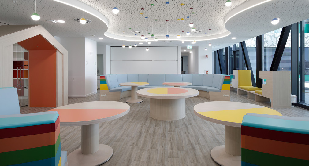 Die neue Klinik bietet den jungen Patienten modernste medizinische Versorgung. Und dazu eine Umgebung, die ihnen – so gut es geht – einen Alltag ermöglichen soll. Es gibt Gemeinschaftsräume zum Essen oder Klassenräume, um gemeinsam zu lernen. Die Architektur des Neubaus soll das psychische Wohlbefinden der jungen Patienten fördern und damit die Heilung jenseits der medizinischen Behandlung unterstützen. Das innovative Raumkonzept haben Mediziner, Psychologen, Pflegekräfte, Patienten- und Elternvertreter, Wissenschaftler und Architekten gemeinsam entwickelt.