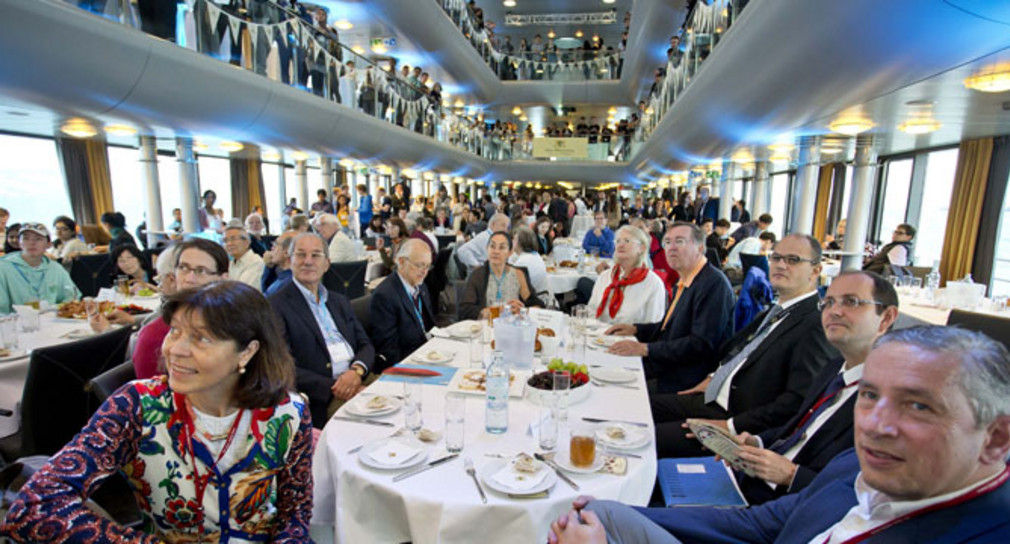 Ein besonderes Erlebnis war der Abschlusstag der Nobelpreisträgertagung auch für die Landessiegerinnen und -sieger im Wettbewerb „Jugend forscht“, die ebenfalls mit an Bord waren und mit den Großen ihres Fachs ins Gespräch kommen konnten.