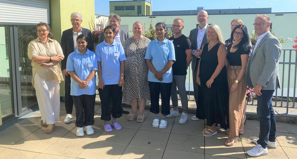 Auch in Baden-Württemberg fehlen dringend benötigte Fachkräfte in der Pflege. Eine Lösung dafür ist unter anderem, gezielt Pflegekräfte aus dem Ausland anzuwerben. Das Ministerium für Soziales, Gesundheit und Integration Baden-Württemberg und die Bundesagentur für Arbeit kooperieren deshalb, um Einrichtungen dabei zu unterstützen. Im Zuge des Projekts „Triple Win“ fördert das Land etwa Sprachkurse für ausländische Pflegekräfte im Ausland. Eine Einrichtung, die vom Programm profitiert hat, ist das Paritätische Mehrgenerationenzentrum in Stuttgart-Vaihingen (PMGZ). Dort arbeiten 69 Pflegekräfte aus 22 Nationen. Am 15. August 2023 besuchte Sozial- und Gesundheitsminister Manne Lucha auf seiner Sommertour die PMGZ gemeinsam mit Christian Rauch, dem Vorsitzenden der Geschäftsführung der Regionaldirektion Baden-Württemberg der Bundesagentur für Arbeit.