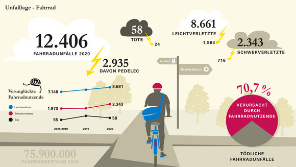 Im Jahr 2020 waren die Unfallzahlen insgesamt stark rückläufig, mit zum Teil erheblichen Rückgängen in fast allen Bereichen. Die Zahl der Verkehrstoten ist auf einem historischen Tiefstand. Einfluss darauf hatten auch die Einschränkungen aufgrund der Corona-Pandemie.