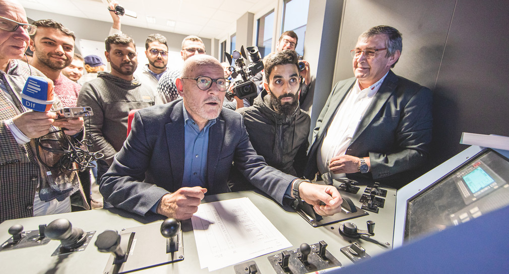Der baden-württembergische Verkehrsminister Winfried Hermann informierte sich heute (30. Oktober) in den Schulungsräumen der MEV-Eisenbahn-Verkehrsgesellschaft über den Fortschritt des vom Verkehrsminister initiierten Modellprojekts zur Qualifizierung Geflüchteter zu Triebfahrzeugführern. Innerhalb des Ausbildungsclusters Karlsruhe/Mannheim konnten die ersten 15 Geflüchteten Anfang Oktober ihren Qualifizierungskurs beginnen. Da Kurse dieses Clusters zum großen Teil in Mannheim durchgeführt werden, ließ sich der Verkehrsminister im modernen Simulator-Raum einen Überblick über die Ausbildungsinhalte geben. Zudem suchte er den engen persönlichen Austausch mit den Auszubildenden.