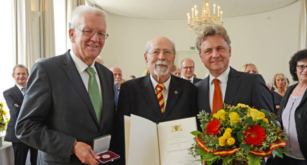 Ministerpräsident Winfried Kretschmann hat Professor Robert Mürb die Staufermedaille in Gold überreicht und dessen vielfältiges Engagement für die Menschen, die Natur und das Gemeinwesen in Baden-Württemberg gewürdigt.
