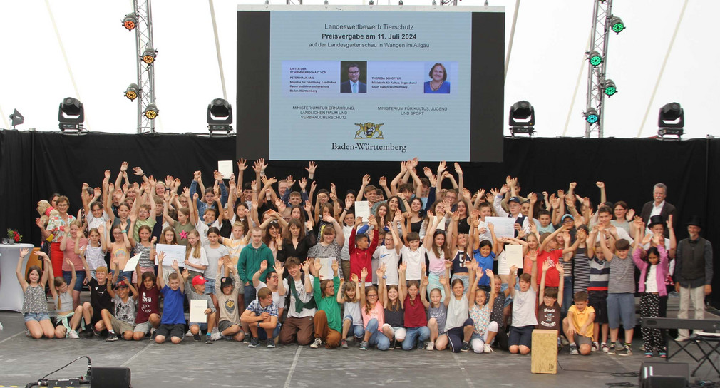 „Die von den teilnehmenden Schülerinnen und Schülern zum diesjährigen Schülerwettbewerb ,Schüler machen sich für Tiere stark‘ eingereichten Arbeiten zeigen deutlich, dass damit ein langfristiger Beitrag für den Tierschutz geleistet wird und die geweckte Begeisterung für Tiere über den Wettbewerb hinaus bestehen bleibt“, sagte die Staatssekretärin im Ministerium für Ernährung, Ländlichen Raum und Verbraucherschutz, Sabine Kurtz, am 11. Juli 2024 anlässlich der Preisverleihung des diesjährigen Schülerwettbewerbs für Tierschutz auf der Landesgartenschau in Wangen im Allgäu.