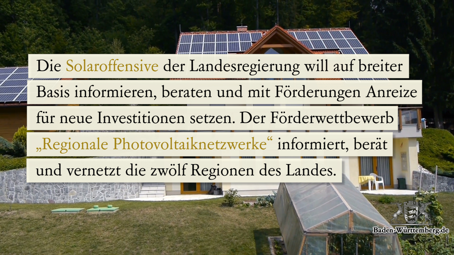 In den letzten Jahren sei der Ausbau der Solarenergie im Land eingebrochen, begründete Umweltminister Franz Untersteller die Notwendigkeit einer Solaroffensive. Verantwortlich dafür seien bundespolitische Weichenstellungen gewesen, die Belastung von Sonnenstrom für den Eigenverbrauch mit der EEG-Umlage, die zurückgehende EEG-Vergütung und die Begrenzung des Ausbaus von Freiflächenanlagen. Gesunkene Installationskosten für Neuanlagen und sehr niedrige Produktionskosten für Sonnenstrom machten PV dennoch weiterhin wirtschaftlich attraktiv. Es sei höchste Zeit, den Ausbau der Sonnenenergie wiederzubeleben.