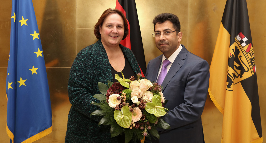 Staatsministerin Theresa Schopper hat den ezidischen Aktivisten und Aurora-Preis-Träger Mirza Dinnayi empfangen und ihm für seinen selbstlosen Einsatz für die Menschlichkeit gedankt.