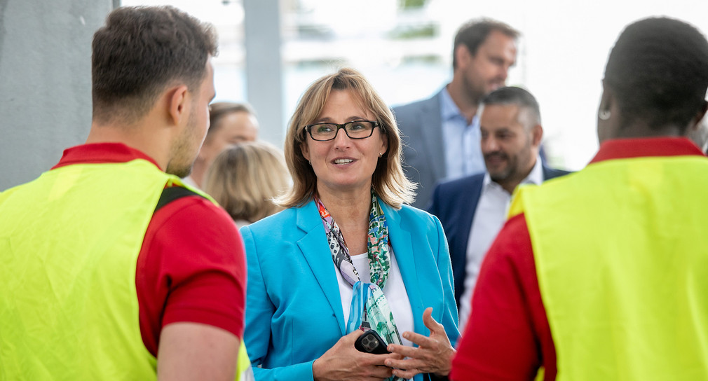 Wirtschaftsstaatssekretärin Katrin Schütz besucht während ihrer dreitägigen Ausbildungsreise vom 3. bis 5. August insgesamt 13 Betriebe, um sich mit Geschäftsleitungen, Auszubildenden sowie Ausbilderinnen und Ausbildern auszutauschen. Stationen der Reise sind Betriebe aus Industrie, Handwerk, Hotel- und Gastgewerbe, aus dem Bereich Spedition und Logistik sowie des Groß- und Einzelhandels. Die Betriebe standen und stehen angesichts der Einschränkungen zur Eindämmung der Corona-Pandemie vor besonderen Herausforderungen und haben dabei innovative Lösungen in der Ausbildung gefunden, um mit ihren Auszubildenden zu arbeiten und zu lernen.
