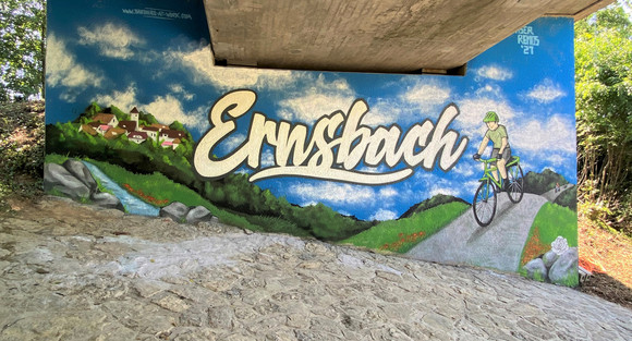 Im Teilort Ernsbach der Stadt Forchtenberg wurde am Brückenwiderlager im Zuge der Landesstraße L 1045 ein nicht genehmigtes, sogenanntes „wildes“ Graffiti entfernt und die gereinigte Fläche anschließend auf Veranlassung des Verkehrsministeriums künstlerisch gestaltet. Die Kosten der Gestaltung belaufen sich auf 8.000 Euro.