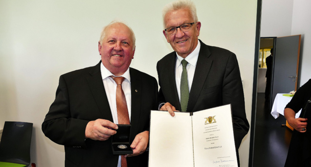 Ministerpräsident Winfried Kretschmann hat dem Sigmaringer Unternehmer Herbert Kaut die Staufermedaille verliehen und seine herausragenden Verdienste um das Gemeinwesen gewürdigt.