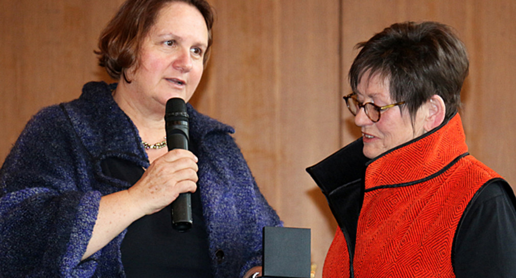 Staatssekretärin Theresa Schopper hat Sonngard Dohrn die Staufermedaille des Landes Baden-Württemberg überreicht und sie als ausgezeichnete Netzwerkerin für eine gerechtere Welt und das Kirchheimer Gemeinwohl gewürdigt.