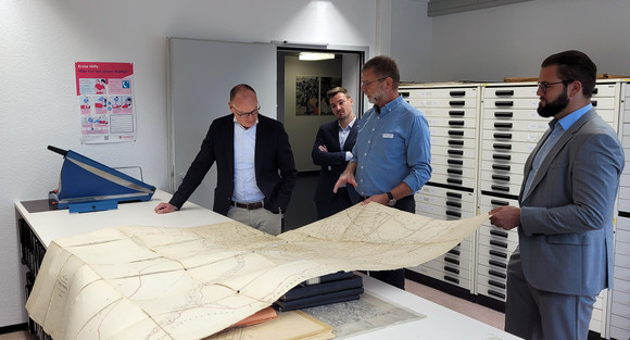 Hier hatte er Gelegenheit, einen Einblick in die vielseitigen Aufgaben der unteren Vermessungsbehörde des Neckar-Odenwald-Kreises zu erhalten. Von der Führung des Liegenschaftskatasters über die Durchführung von Liegenschaftsvermessungen bis hin zu Bodenordnungsverfahren – die Aufgaben sind vielfältig und komplex.