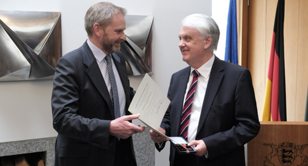 Staatssekretär Volker Ratzmann hat dem ehemaligen Präsidenten des Zentralverbandes der Deutschen Haus-, Wohnungs- und Grundeigentümer, Dr. Rolf Kornemann, in Berlin das Verdienstkreuz am Bande des Verdienstordens der Bundesrepublik Deutschland überreicht.