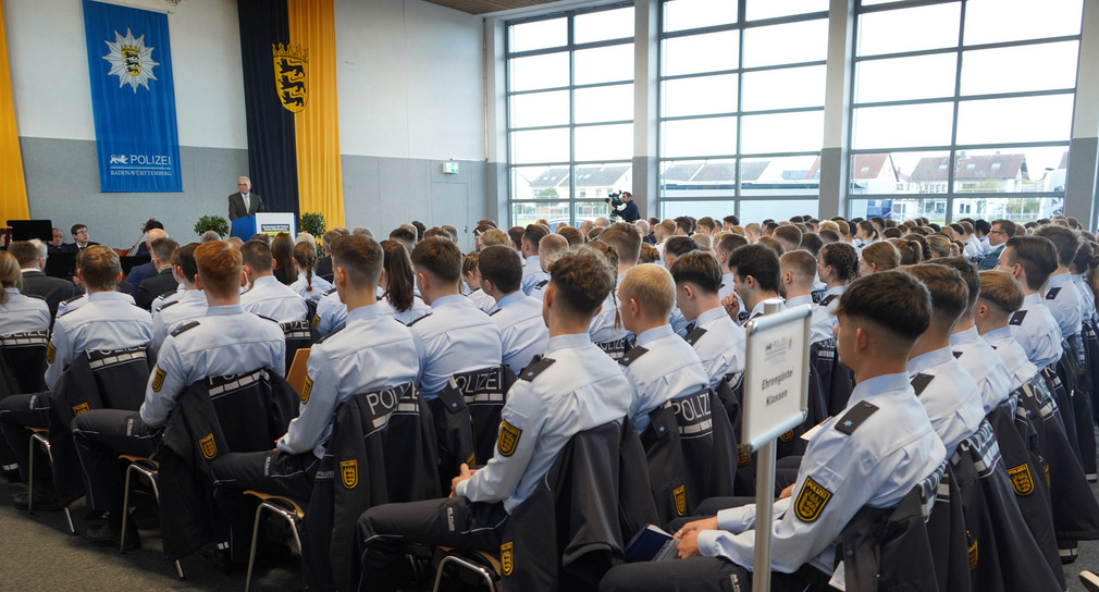 Mit dem Diensteid bekennen sich die Polizeibeamtinnen und Polizeibeamten zur Aufgabe, das Grundgesetz und die Landesverfassung zu schützen und zu verteidigen und bezeugen damit ihre Loyalität zur freiheitlich-demokratischen Grundordnung. Für das Jahr 2024 hat die Polizei Baden-Württemberg insgesamt 1.201 Auszubildende im mittleren Polizeivollzugsdienst und Studierende im gehobenen Polizeivollzugsdienst eingestellt. Die Ausbildung beziehungsweise das Studium für die nun vereidigten Polizistinnen und Polizisten endet in den Jahren 2027 und 2028.